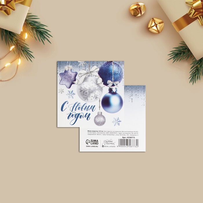 Мини-открытка, С Новым годом, Елочные шары, 7*7 см, 10 шт.