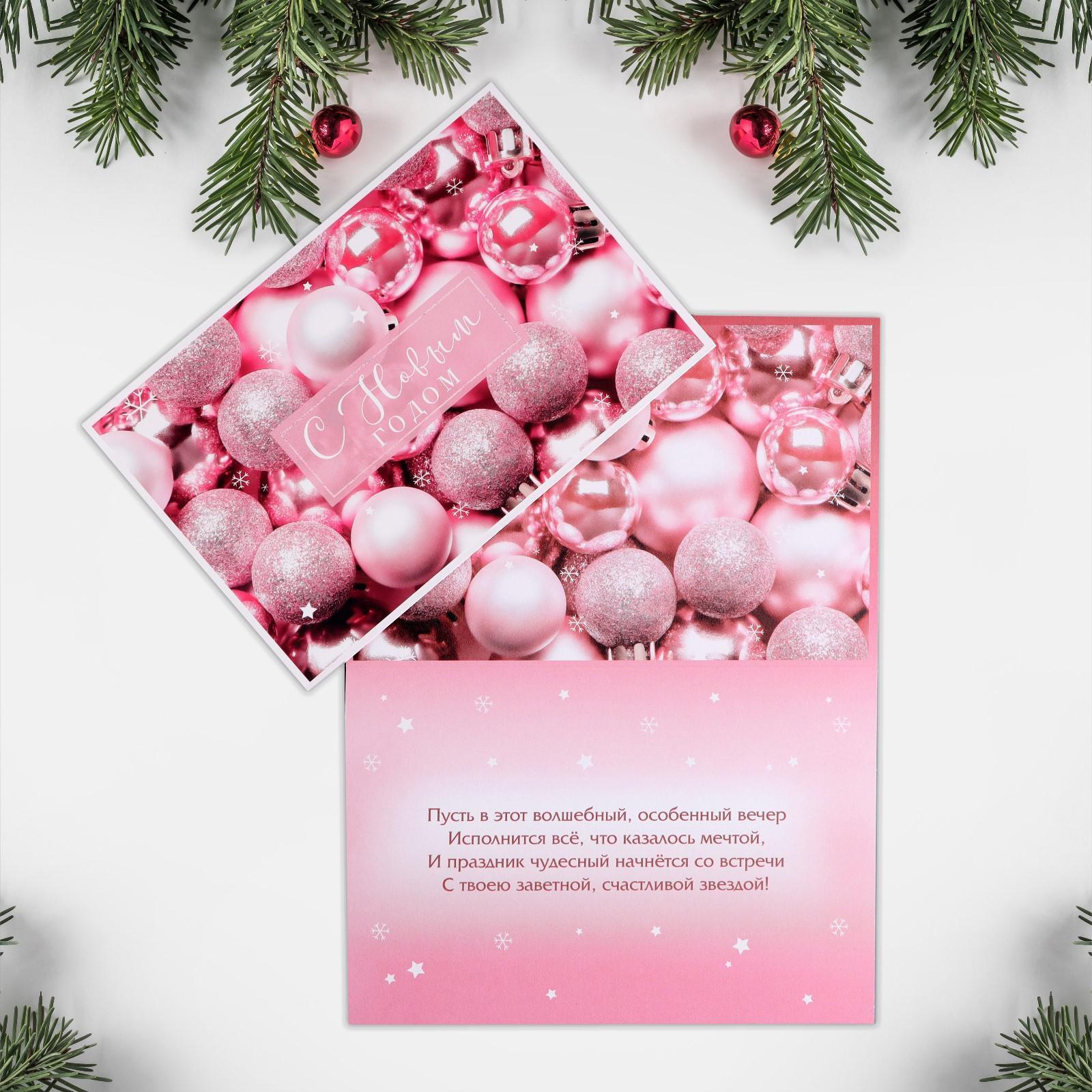 Открытка, С Новым годом, Елочные игрушки, Розовый, 12*18 см.