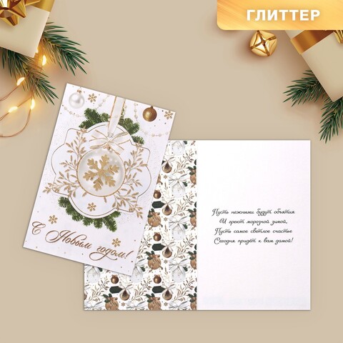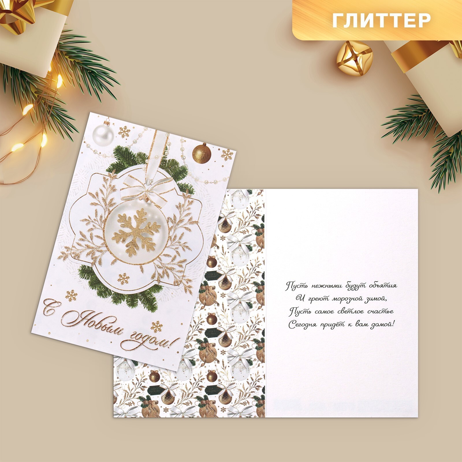 Открытка, С Новым годом, Шар, глиттер, 12*18 см.