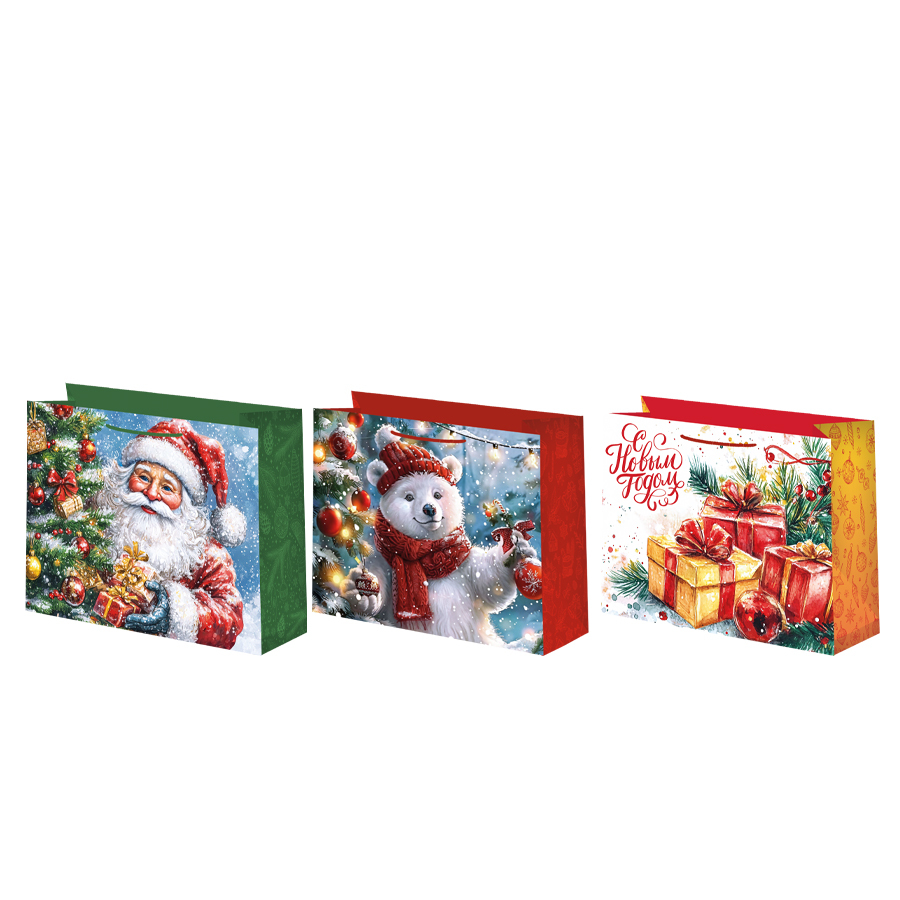 Пакет подарочный M горизонтальный, Новый Год, МИКС, 26*32*13 см (Д*В*Ш), 1 шт.