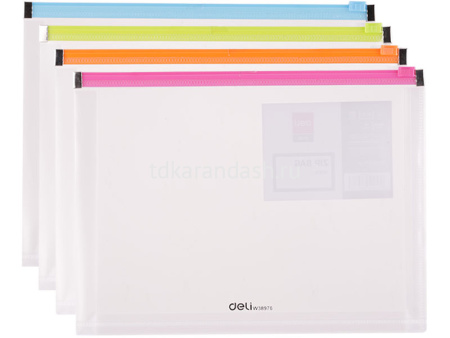 Папка на молнии А4 0,18мм прозрачная с расширением, 4 цвета молнии
