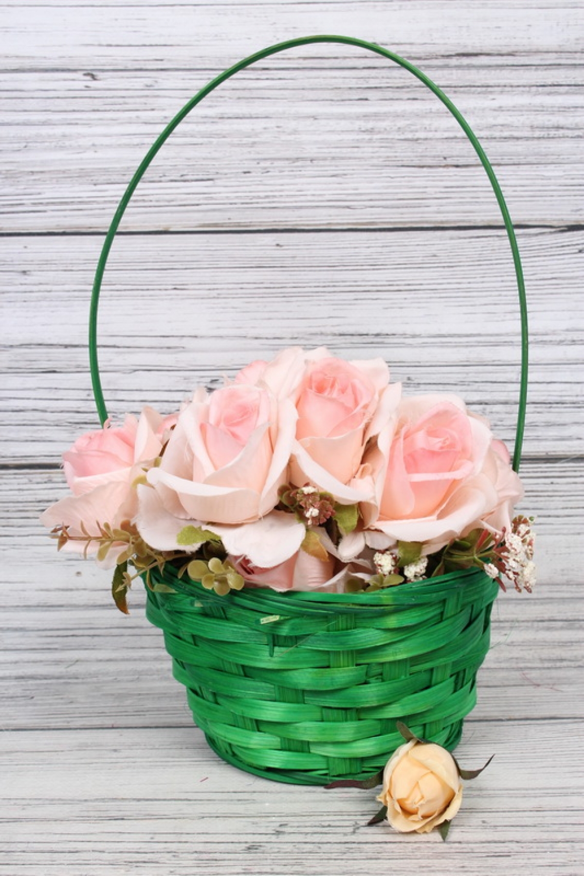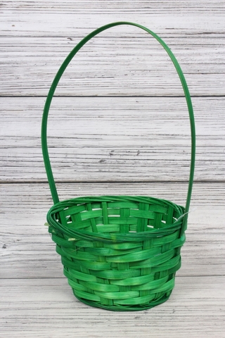 Корзина плетеная с ручкой (бамбук), Зеленый , D=17 см, H=9*30 см, 1 шт.
