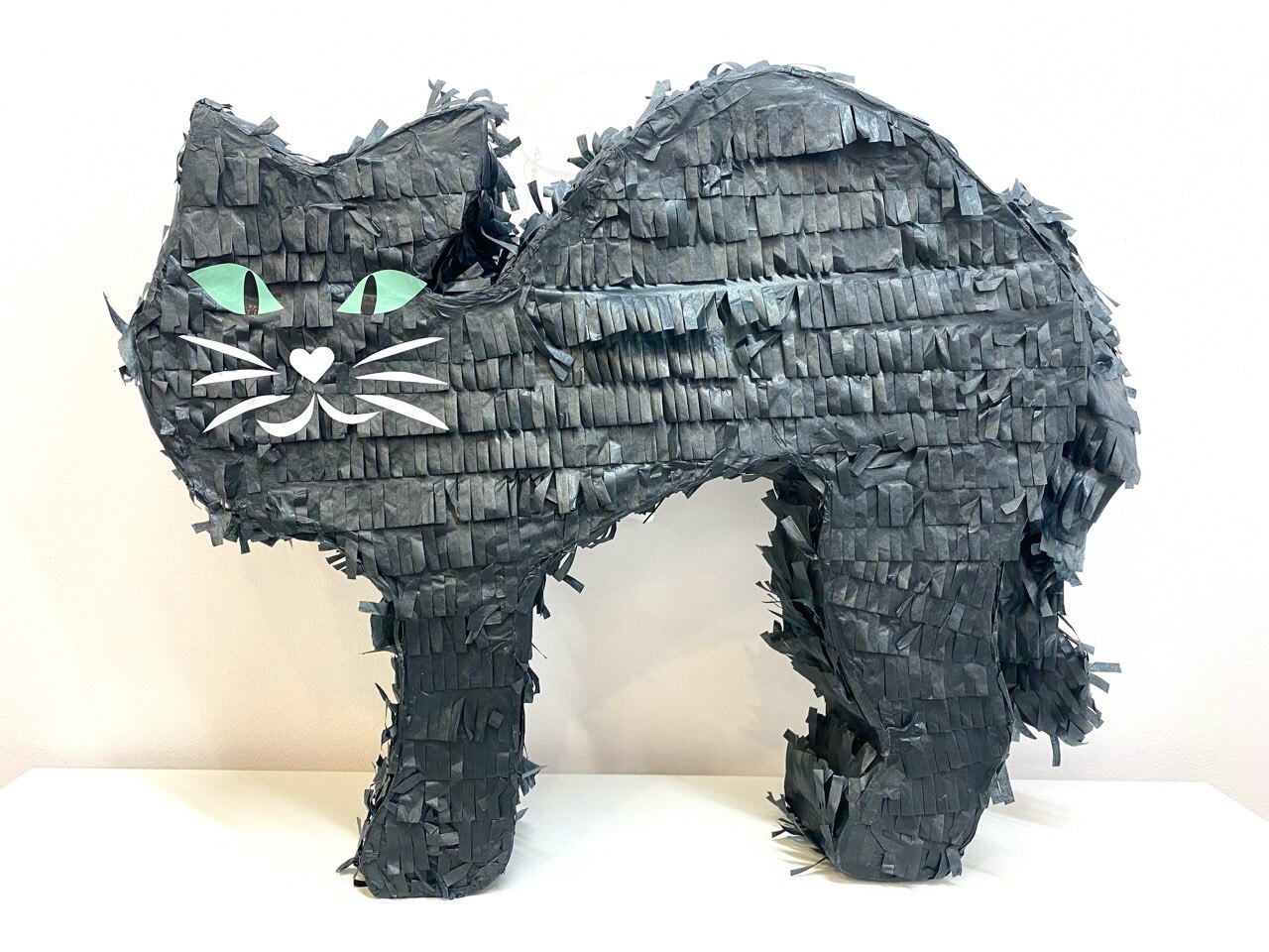 Пиньята - мексиканская по происхождению игра для взрослых и детей. Изготавливается из папье-маше с украшениями. Пиньяту наполняют различными угощениями и игрушками (до 900гр наполнителя) и подвешивают к потолку или на дерево. При игре в традиционную пиньяту участнику завязывают глаза, раскручивают, и затем он пытается за несколько попыток найти и разбить пиньяту. Остальные участники, чтобы запутать, выкрикивают неверные подсказки, раскачивают, опускают и приподнимают пиньяту. Также пиньята может служить оригинальным украшением интерьера на Хеллоуин. Размер пиньяты Кошка: 47*34,5*8 см.