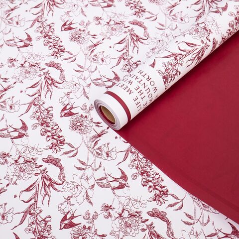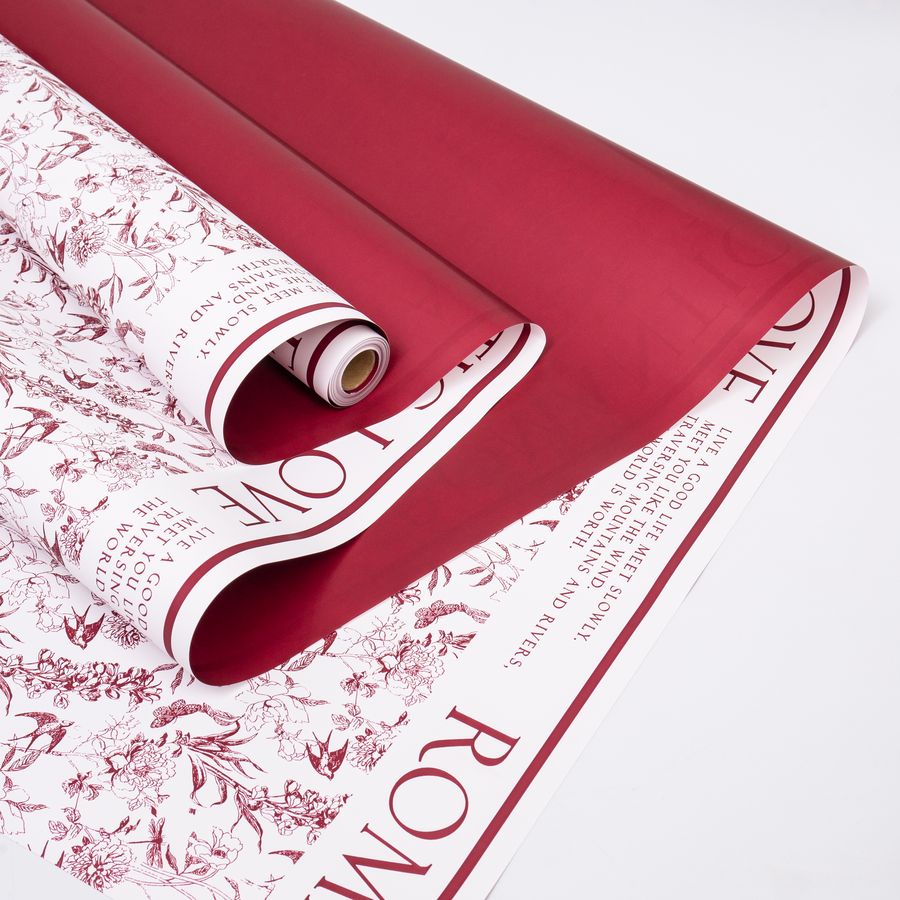 Упаковочная пленка/для цветов, Двухсторонняя матовая, Романтическая любовь, бордовая, 65 мкм, 0,57*10 м