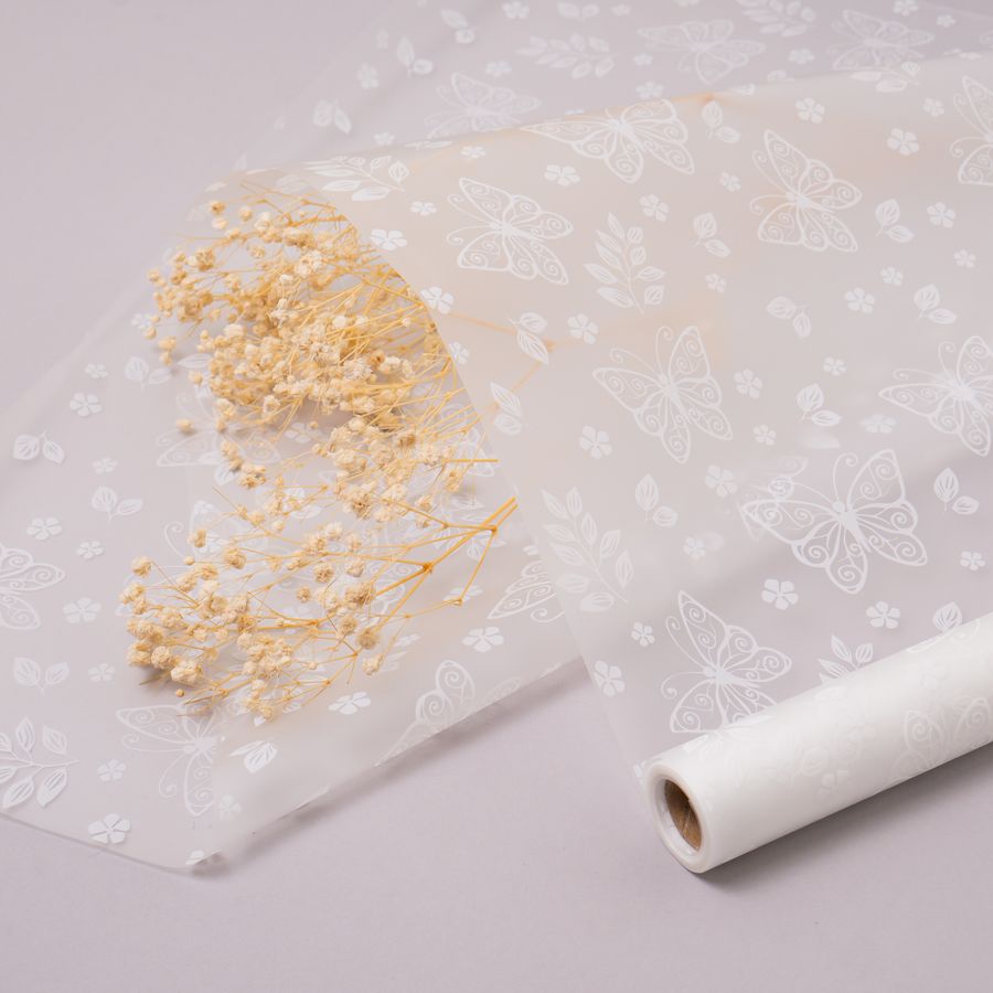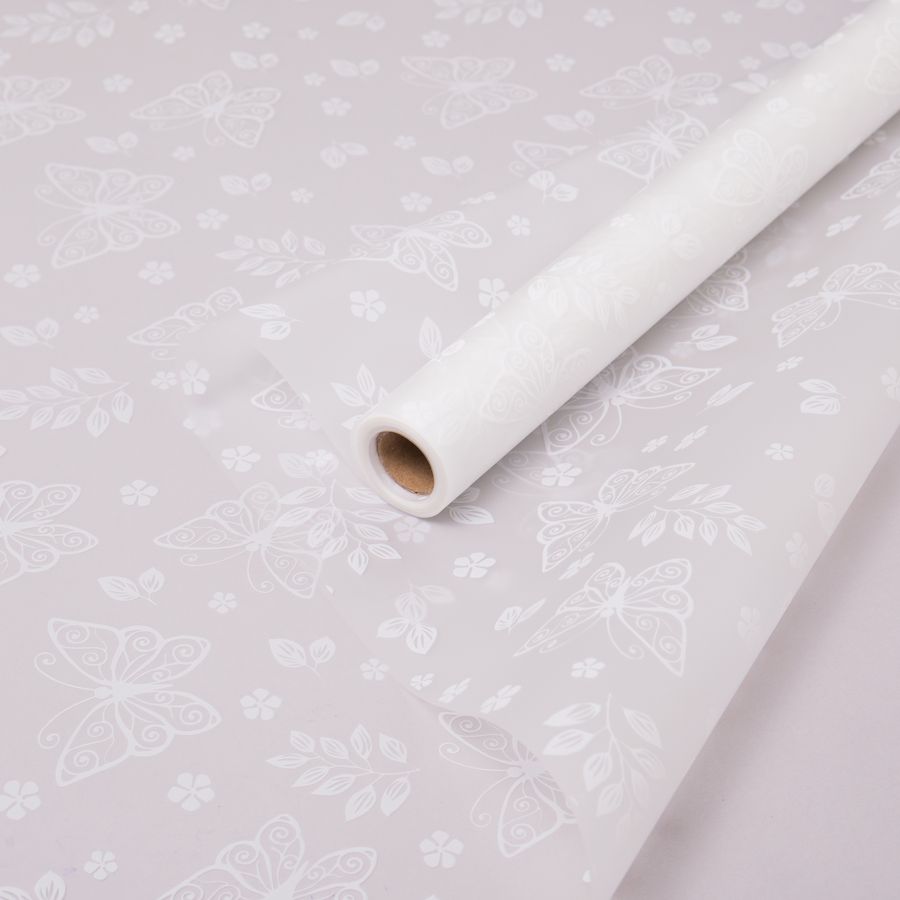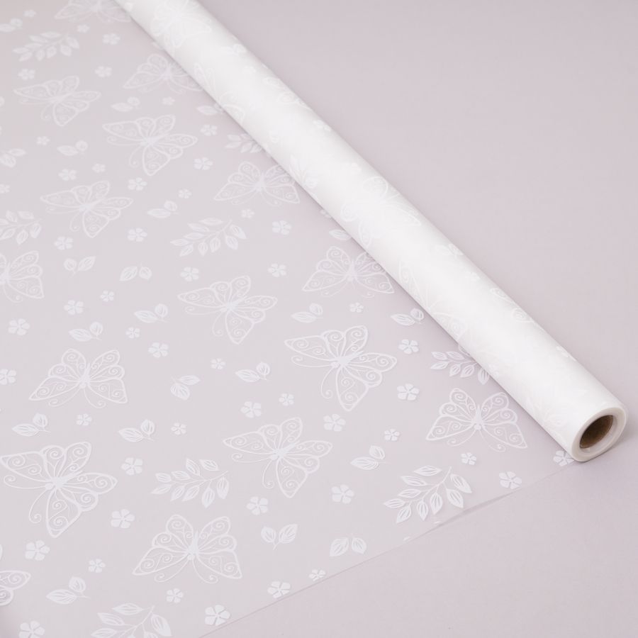 Упаковочная пленка/для цветов, Матовая, Бабочки, Белая, 55 мкм, 0,57*10 м
