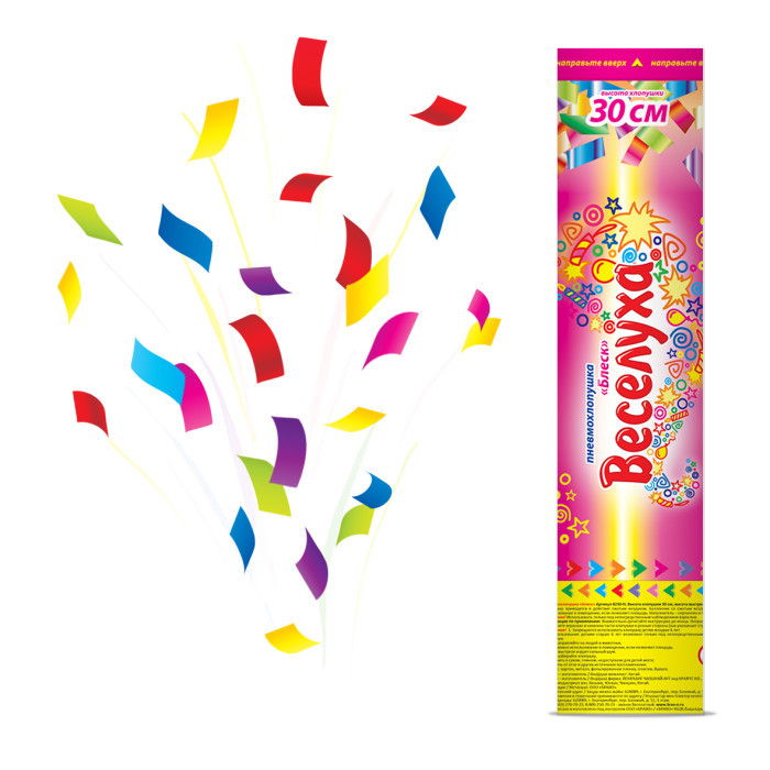 Пневмохлопушка Блеск украсит любое торжество – свадьбу, юбилей, корпоративный или детский праздник. Фонтан из разноцветных конфетти высотой 5-8 метров поможет придать празднику сказочную атмосферу.