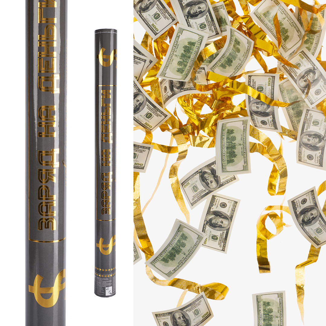 Пневмохлопушка с денежными купюрами и серпантином сделает любой праздник ярче, а фото- и видео-съемку еще более эффектной.