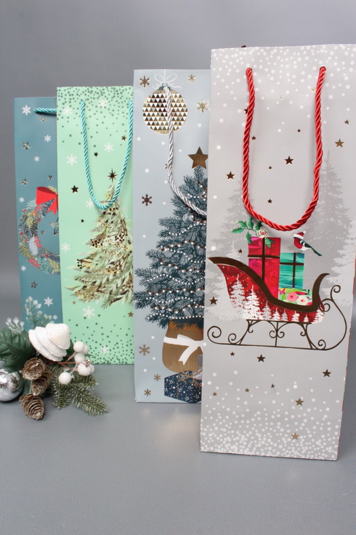 Пакет подарочный под бутылку, НГ Новогодняя фантазия, МИКС, 12*36*9 см (Д*В*Ш)