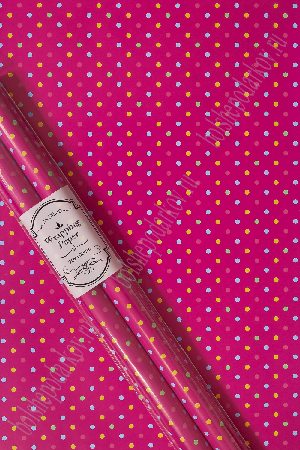 Упаковочная бумага, Цветной горошек на ярко-розовом, 0,7*1 м, 2 листа
