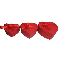 Архив Коробка подарочная Сердце, Набор 3 в 1, Фактурный узор, с бантом, Красный, 31*27*13,3 - 26*23*10,3 см