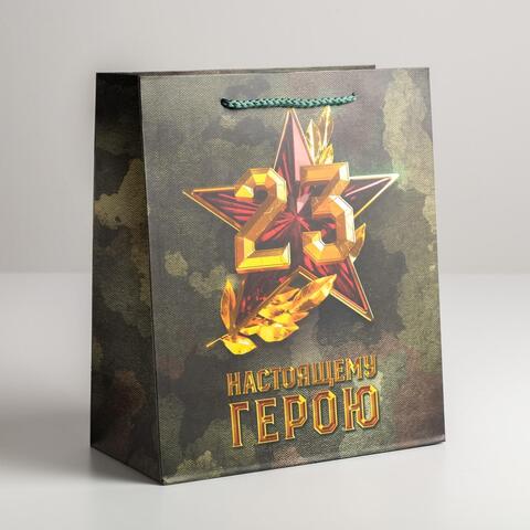 Пакет подарочный ML вертикальный ламинированный, "Настоящему герою", 23*27*11,5 см (Д*В*Ш), 1 шт.