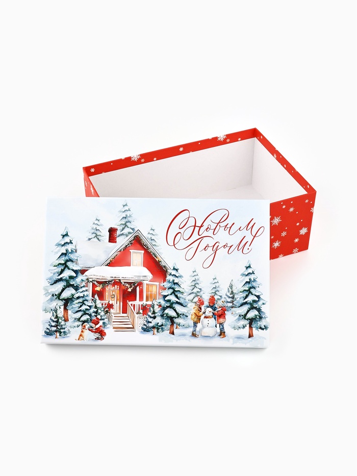 Коробка одиночная, Прямоугольник, «Сказочная новогодняя акварель», 22*14*8,5 см, 1 шт.