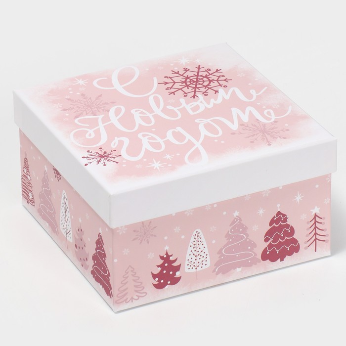 Коробка одиночная, Квадрат, Happy New year, 15,5*15,5*9см, 1 шт.