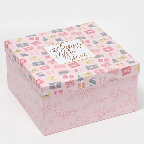 Коробка одиночная, Квадрат, Happy New year, см, 1 шт.
