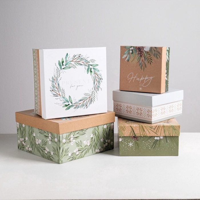 Коробка одиночная, Квадрат, «Зимний», см, 1 шт.18*18*10