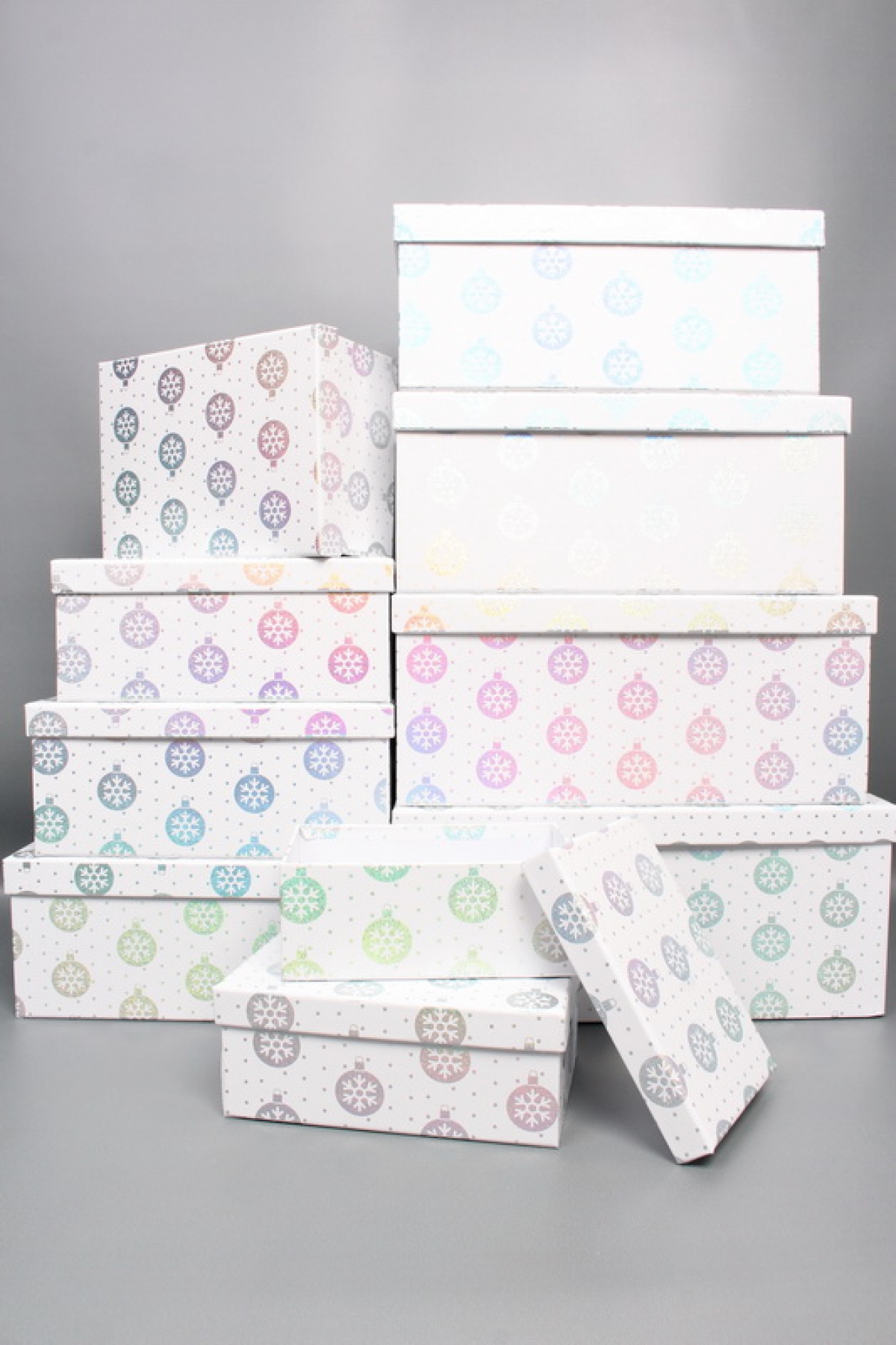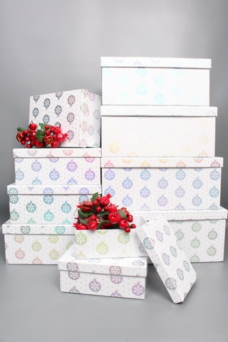 Коробка одиночная, Прямоугольник, НГ Игрушки серебро, 33*25.5*14.5 см