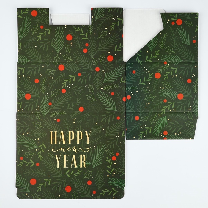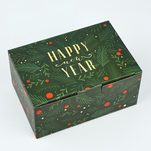 Коробка сборная одиночная Прямоугольник, «С Новым годом», 22*15*10 см