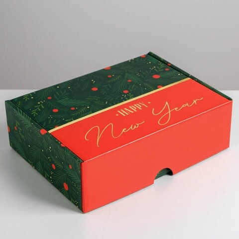 Коробка сборная одиночная Прямоугольник, «С Новым годом», 30*22*9 см