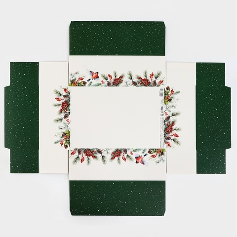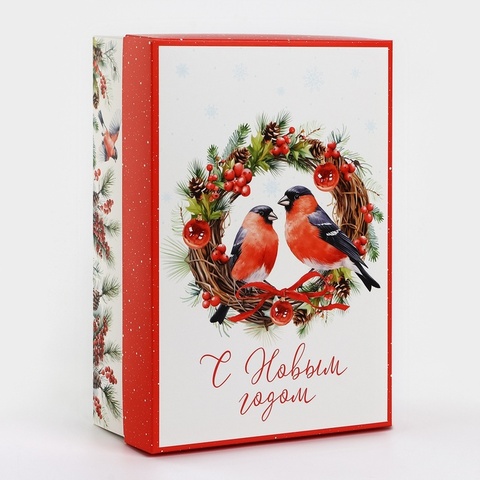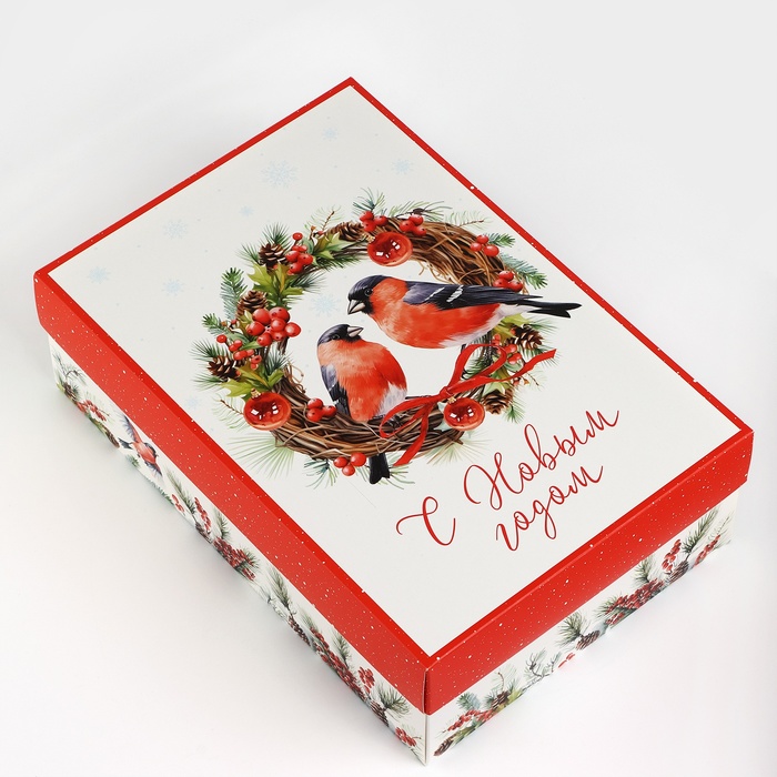 Коробка сборная одиночная Прямоугольник, С Новым годом, Снегири, 30*20*9 см