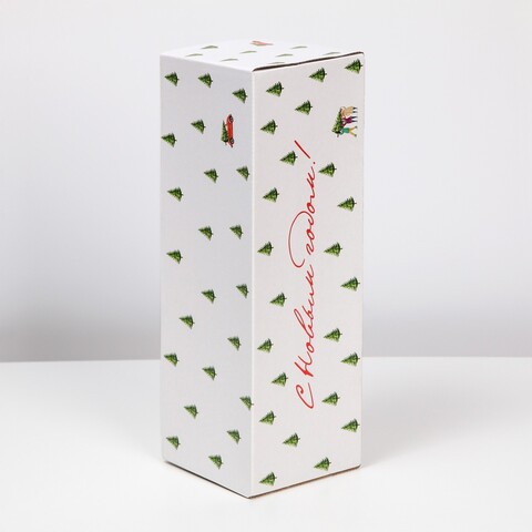 Коробка складная одиночная под бутылку «С Новым годом» Елочки, Белый, 33,6*12*12 см, 1 шт.