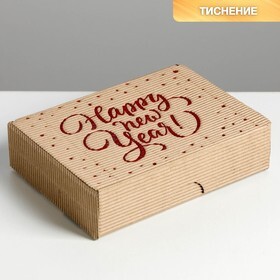 Коробка складная одиночная Прямоугольник, рифленая «Happy New Year!», 21*15*5 см, 1 шт.