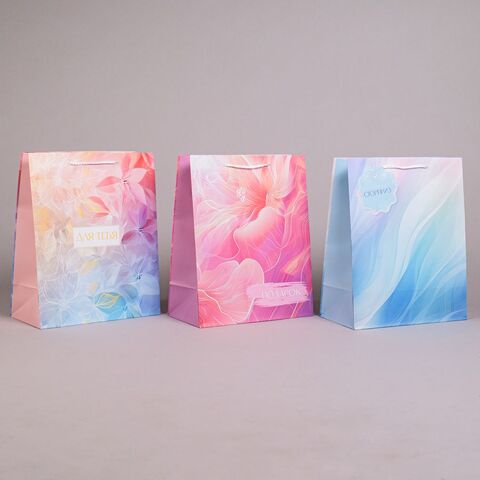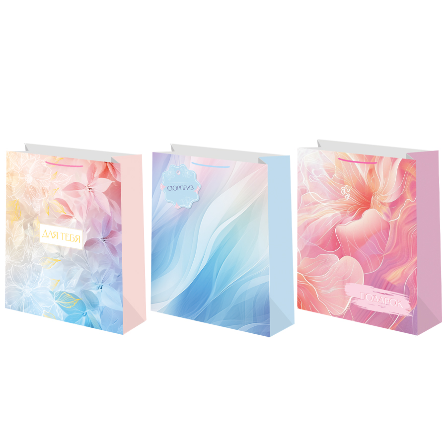 Пакет подарочный M вертикальный, Акварель, МИКС, 26*32*13 см (Д*В*Ш), 1 шт.