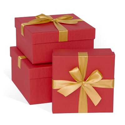 Коробка одиночная, Квадрат, с бантом тиснение Лен, Красный, 17*17*7 см, 1 шт.