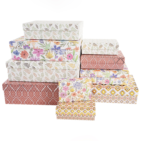 Коробка одиночная, Прямоугольник, Флористический декор, Ассорти, Металлик, 19*13,5*6 см, 1 шт.