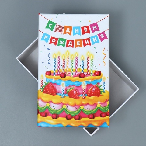 Коробка одиночная, Прямоугольник, «С днём рождения», 12*7*4 см, 1 шт.