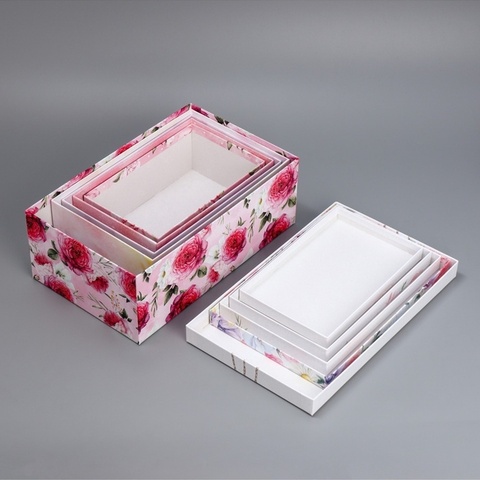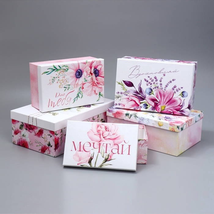 Коробка одиночная, Прямоугольник, «Цветы», 22*14*8.5 см, 1 шт.