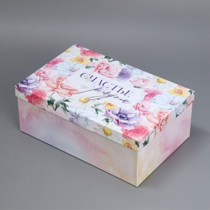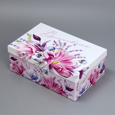 Коробка одиночная, Прямоугольник, «Цветы»,28*18,5*11 см, 1 шт.