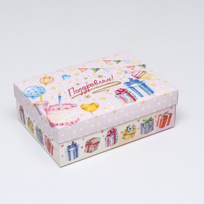 Коробка одиночная Прямоугольник, 17*24*8 см, «Праздничный торт», 1 шт.