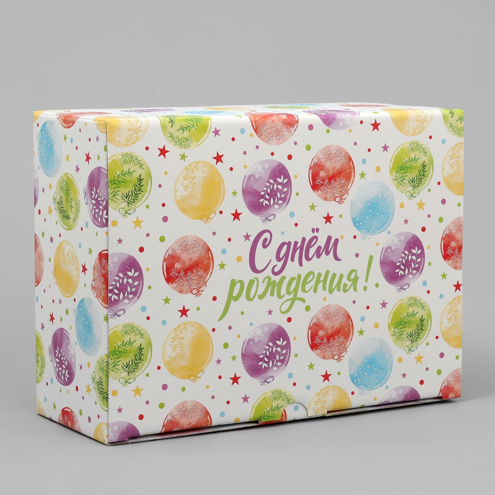 Коробка самосборная одиночная Прямоугольник, 19*26*10 см, «С днем рождения» Разноцветные шары, 1 шт.