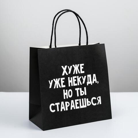 Пакет подарочный S квадратный, «Хуже уже некуда», 22*22*11см (Д*В*Ш)