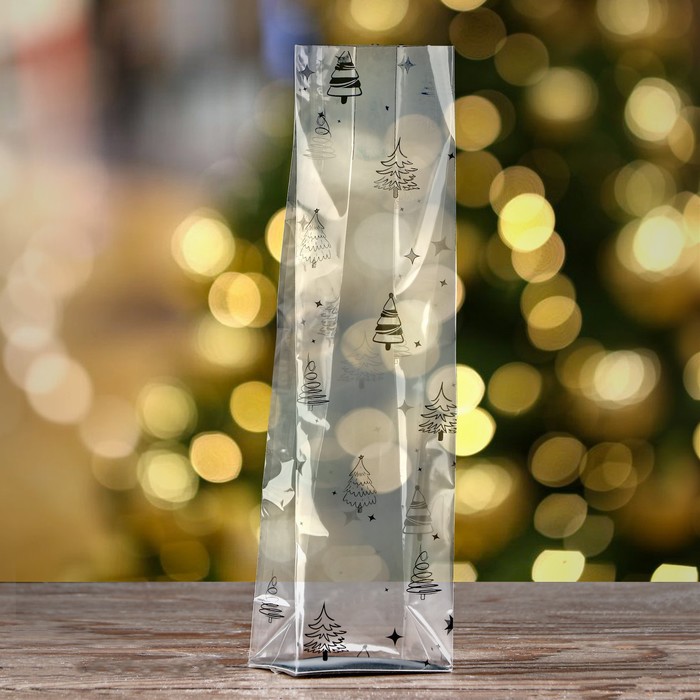 Пакет с жестким дном, Елочки, Прозрачный, 8*6*30 см (Д*Ш*В), 5 шт.