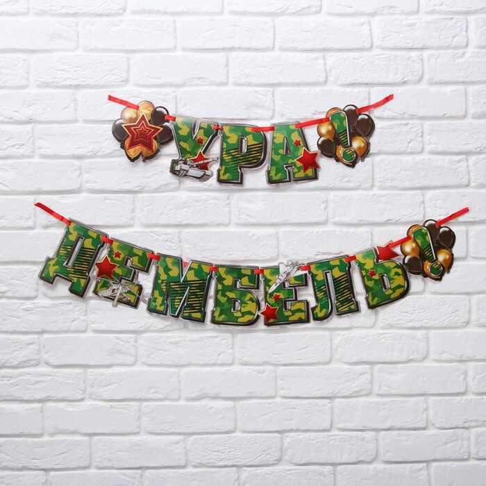 Гирлянда-буквы «Ура! Дембель», на ленте, 16 см*2 м, 1 шт.