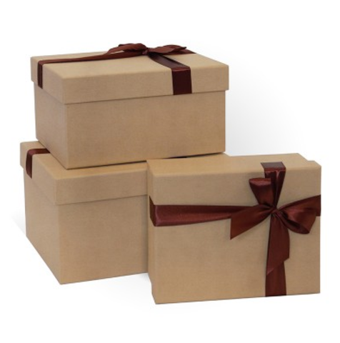 Коробка одиночная, Прямоугольник, Крафт "С бантом", 17*13*7 см, 1 шт.