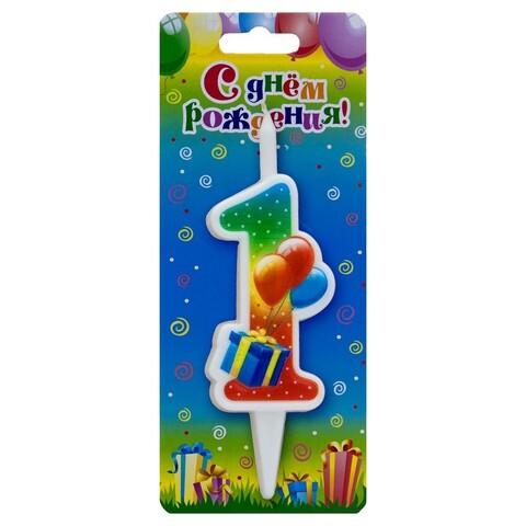 Свеча-цифра тортовая "С подарком" 1, 12 см, 1 шт.