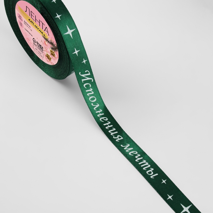 Лента Атласная (1,5см*23±1м), «Исполнения мечты», Зеленая, 1 шт.