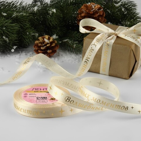 Лента Атласная (1,5см*23±1м),«Волшебных моментов», Бежевая, 1 шт.