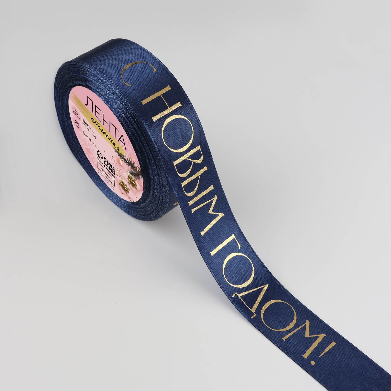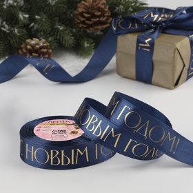 Лента Атласная (2,5см*23±1м), С новым годом, Темно-синий, 1 шт.