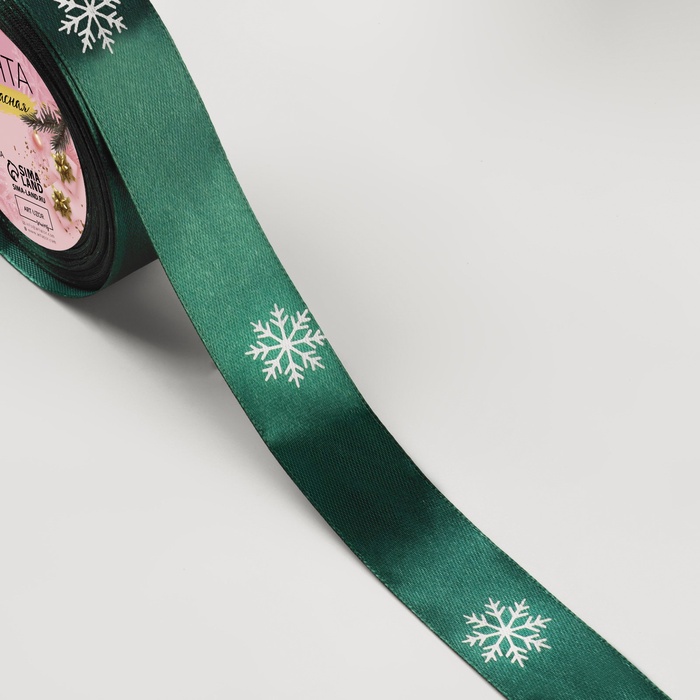 Лента Атласная (2,5см*23±1м), «Снежинки», Зелёная, 1 шт.