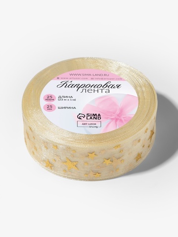 Лента органза (2,5 см*23±1 м), с тиснением «Звезды», Бежевый