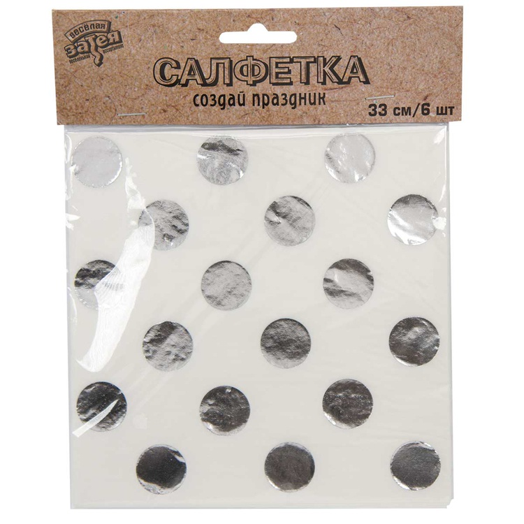 Салфетка, Серебряный горошек на белом, 33 см, 6 шт.