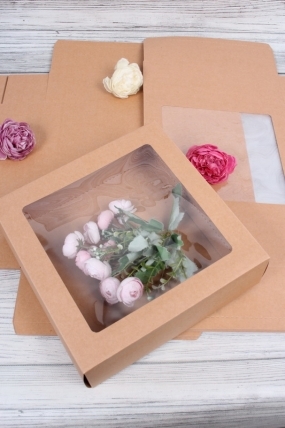 Коробка-трансформер/складная с окном, Крафт, 20*20*5 см, 1 шт.