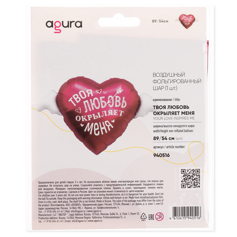 Аг Фигура, Сердце, Твоя любовь окрыляет, 35''/89 см, 1 шт.