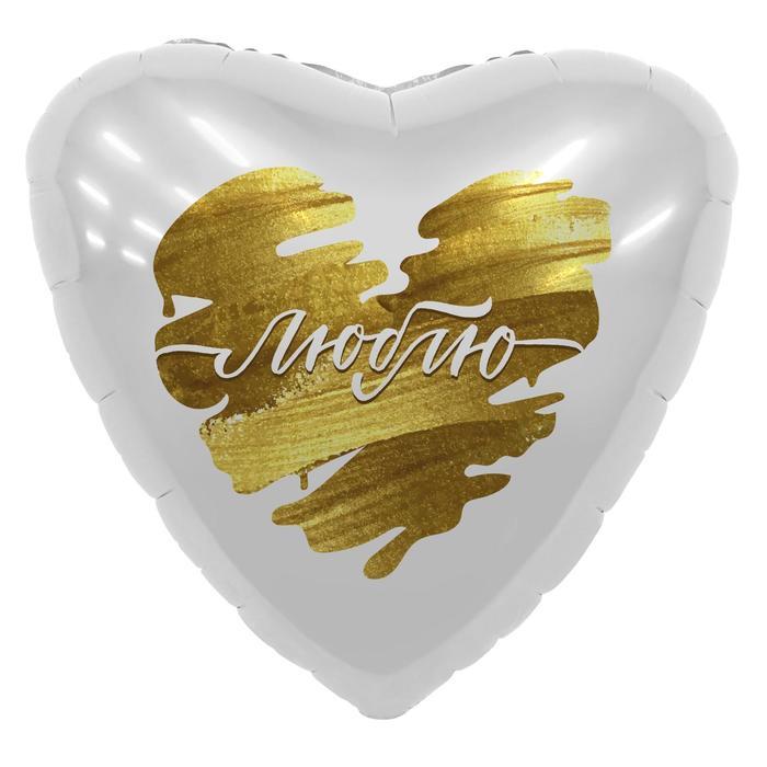 Аг 19''/48 см, Сердце, Люблю, золотые штрихи, Белый, 1 шт.