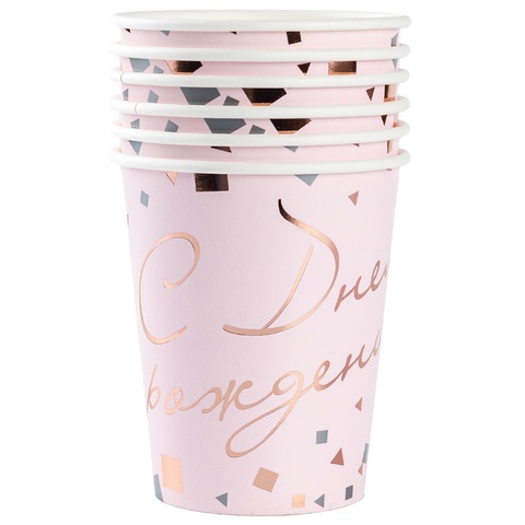 Стаканы, С днем рождения, Конфетти Party, Розовый, 250 мл, 6 шт.