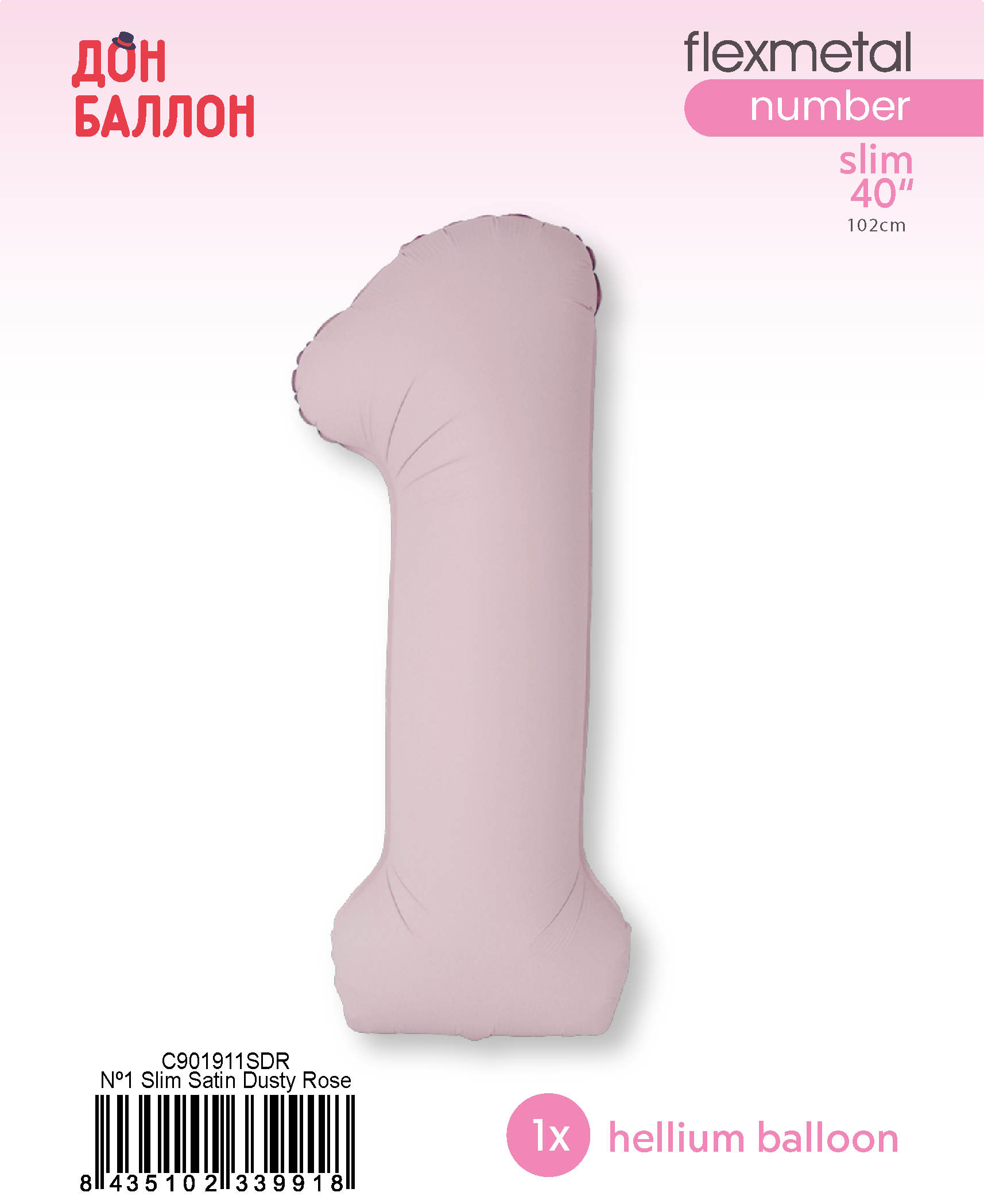F 40"/102 см, Цифра Slim, Пыльная роза, Сатин "1" (в упаковке)
