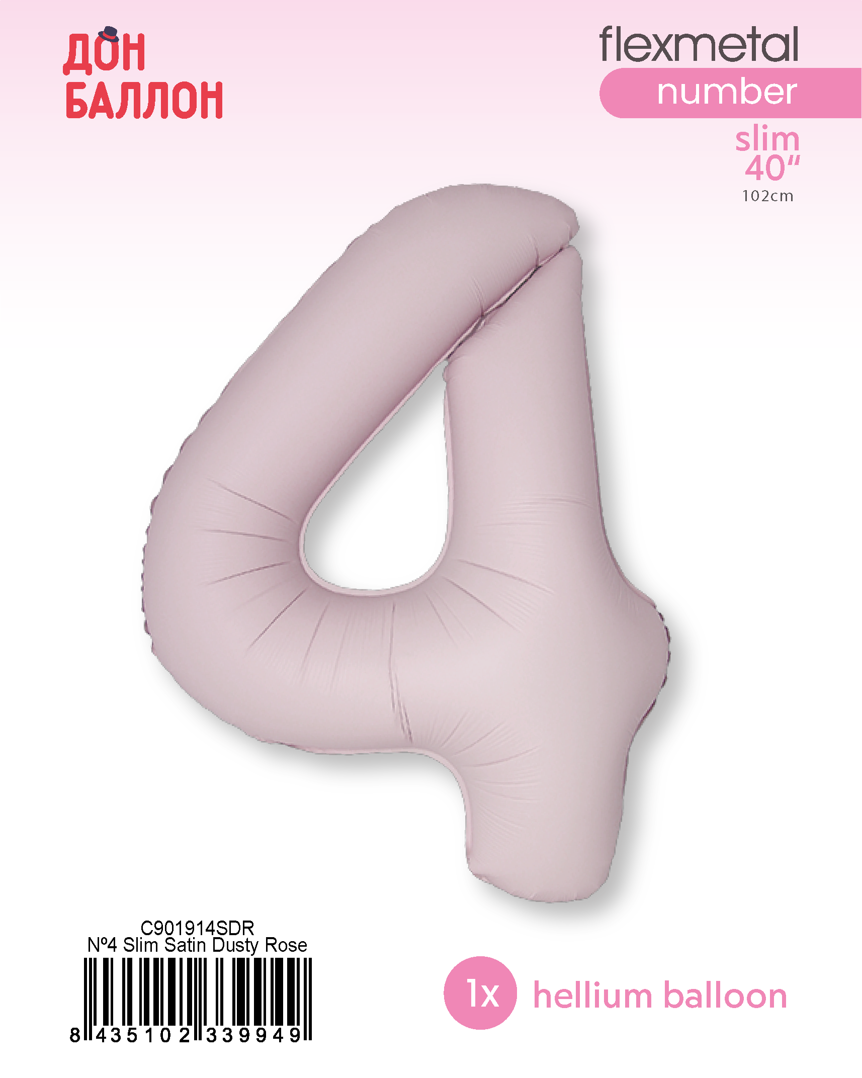 F 40"/102 см, Цифра Slim, Пыльная роза, Сатин "4" (в упаковке)